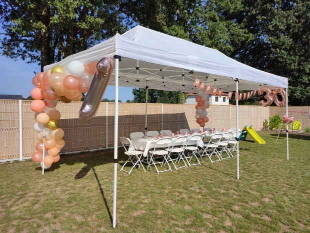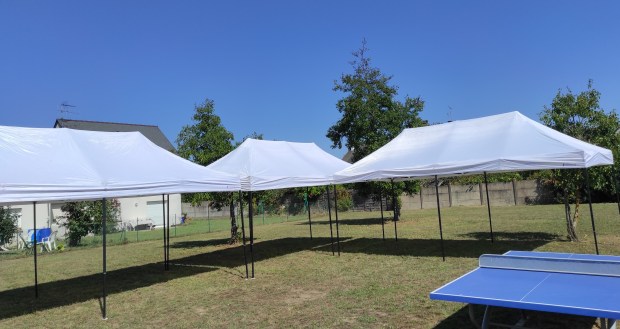 - Montage de type parapluie, simple et rapide (en moins d’une minute), sans efforts ni outils grâce aux goupilles ergonomiques situées aux angles de la structure