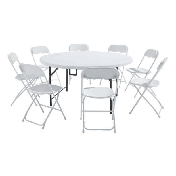 Cette table pliante ronde en polyéthylène (HDPE) est idéale pour les ateliers, sous les tentes et chapiteaux.