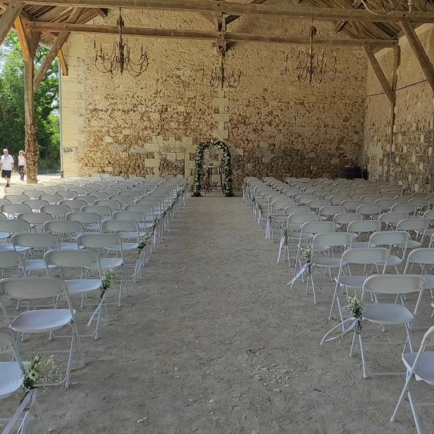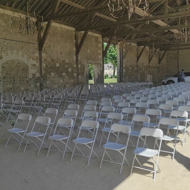 La chaise de réception blanche mesure 40x45x81cm en position ouverte.
